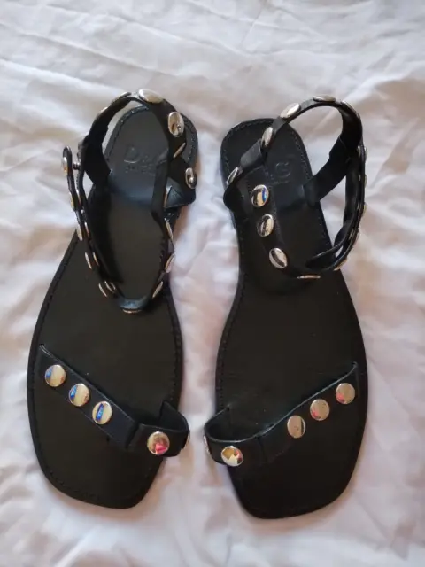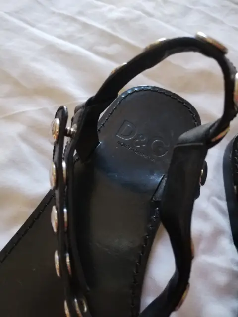 Sandalias Dolce & Gabbana. Lindas sandalias color negro de piel con estoperoles plateados, planas súper cómodas. En perfectas condiciones. Talla 25.5 cm.