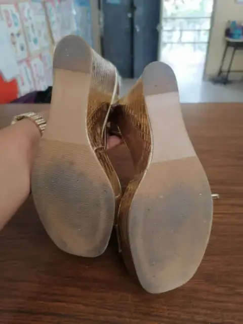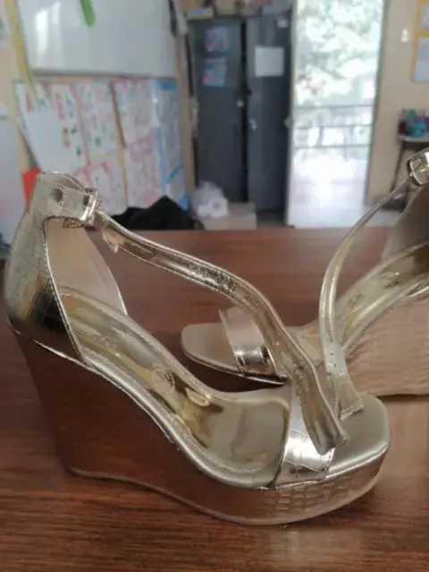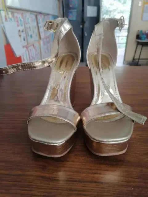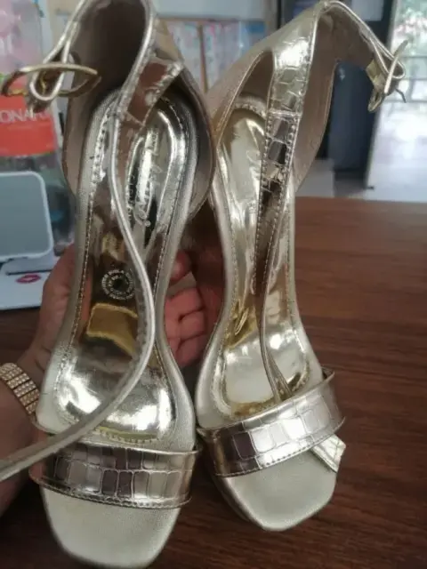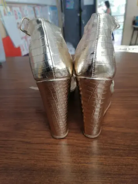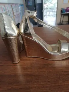 Sandalias doradas #4 altas , hermosassolo se usaron una vez , estilizan muy bonito