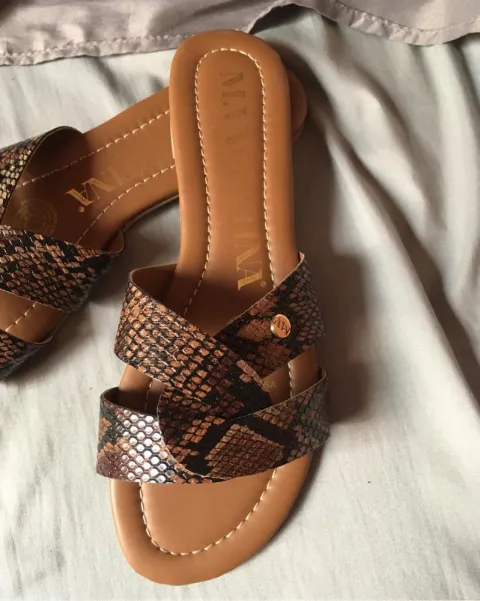 Bellas y cómodas sandalias con estampado de víbora en tonos cafés con ligero tacón material sintético anti humedad, nuevas en número 6 cómodas y lindas