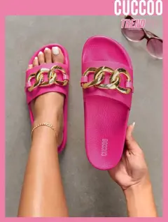 Nuevas y súper cómodas sandalias color fiusha #5.5 a 6 la banda es elástica y el decorado es de acrílico dorado.