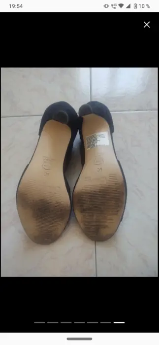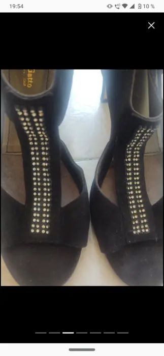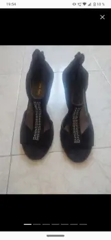 Sandalias de tacón con pequeños adornos en pedrería, con cierre en la parte trasera. Casi no tienen uso. Son número 60 equivalente a 4.Tienen un tacón pequeño de 6 cm.