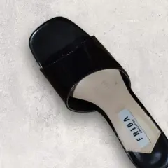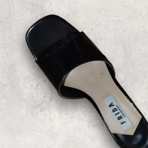 Sandalias Frida Tacon. Cómodas y súper vestidoras sandalias color negro tipo charol. Súper bonitas, con tacón ancho que da soporte al pie.Totalmente nuevas