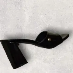 Cómodas y súper vestidoras sandalias color negro tipo charol. Súper bonitas, con tacón ancho que da soporte al pie.Totalmente nuevas