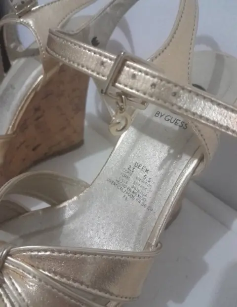 Sandalias G by Guess. Sandalias de plataforma doradas, súper bonitas, muy combinables...poco uso, talla 2.5 pero vienen reducidas, creo quedarían mejor a talla 2. Pequeño detalle en punta, casi imperceptible