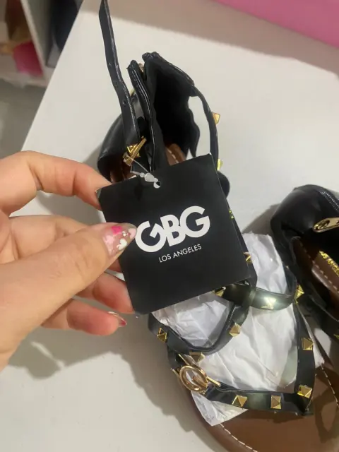 SANDALIAS GBG NUEVAS no 25.5 ESTOPEROLES. HERMOSAS SANDALIAS negras con estoperoles dorados. Marca visible al frente con en color dorado. Nuevos sin detalles. No vienen en caja.