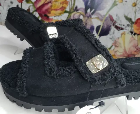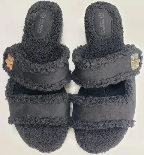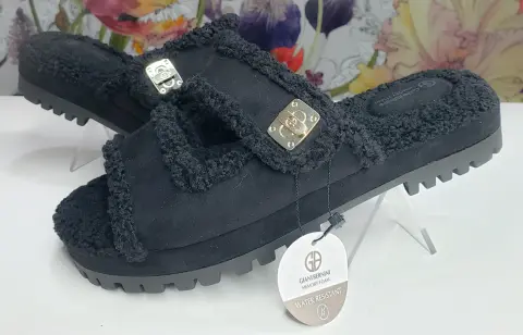 sandalias Gianni Berninni. pantunflas por dentro con peluche tipo aborregado de color negro con suela repelente al agua. puedes utilizarlas como sandalias