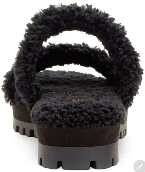 pantunflas por dentro con peluche tipo aborregado de color negro con suela repelente al agua. puedes utilizarlas como sandalias