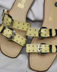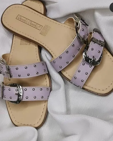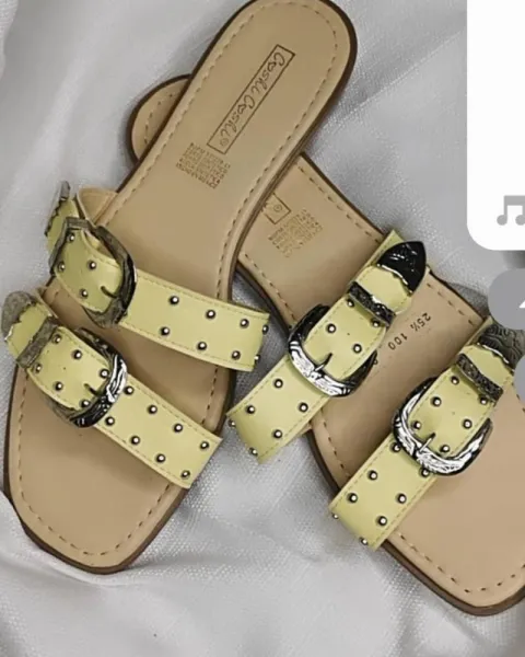 Sandalias HEBILLAS y estoperoles. Descripción:Precioso sandalias súper de modaColor lila pastel y amarillo pastelDuo 🩴🩴🎁 Envío en caja recicladaTotalmente nuevos