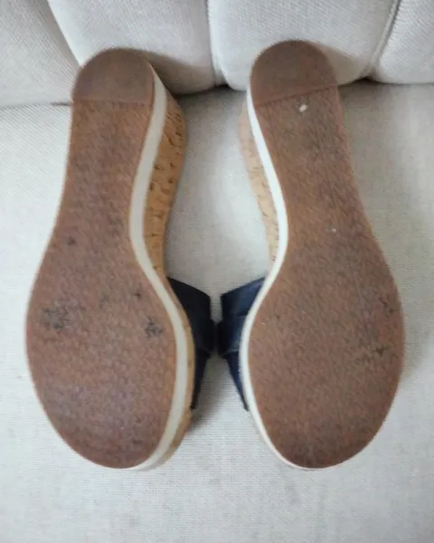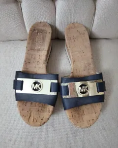 Sandalias Michael Kors azul marino. Sandalias MK azul marino único detalle está en la plaquita, no es de metal es plástica y tiene unos pedacitos descarapelado pero no se nota mucho.