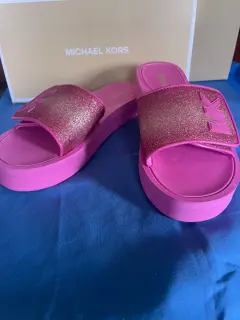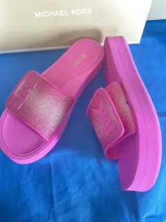 Sandalias MK rosas 25mx. Sandalias rosas de plataforma, talla 25mx, nuevas. Se entrega en su caja original. Ningún detalle.