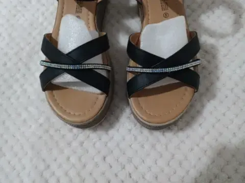 🔸Lindas sandalias de tiras negras y una de brillos 🔸En excelente estado , solo una puesta 🔸Talla: 5 🔸Súper cómodas y combinables