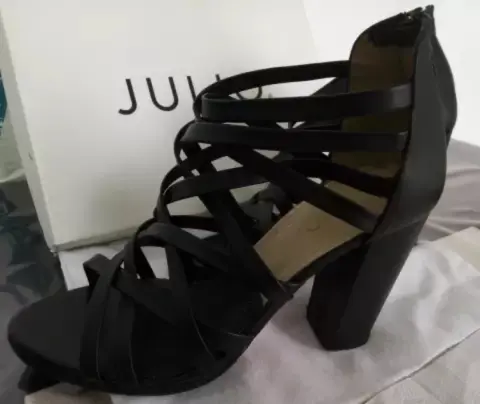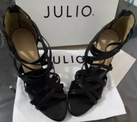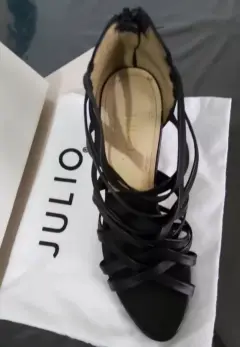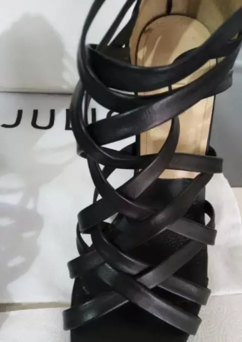 Sandalias negras marca Julio. Buscas unas sandalias con diseño original y sofisticado?Este par es para ti!!Tacón: 10.5 cmTalla: #6Material: piel.Usadas sólo 1 vez, limpias.