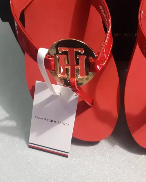 Sandalias pata de gallo Tommy Hilfiger. Sandalias rojas, pata de gallo Tommy Hilfiger, de media plataforma, nuevas, con caja, #23 cm