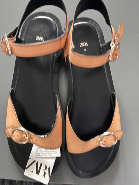 Son unas sandalias marca Zara, nuevas, realizadas en piel, talla 42 europeo que corresponde a una talla 27.5 a 28 mexicano, en color camel, de piso.