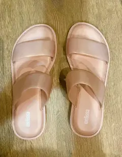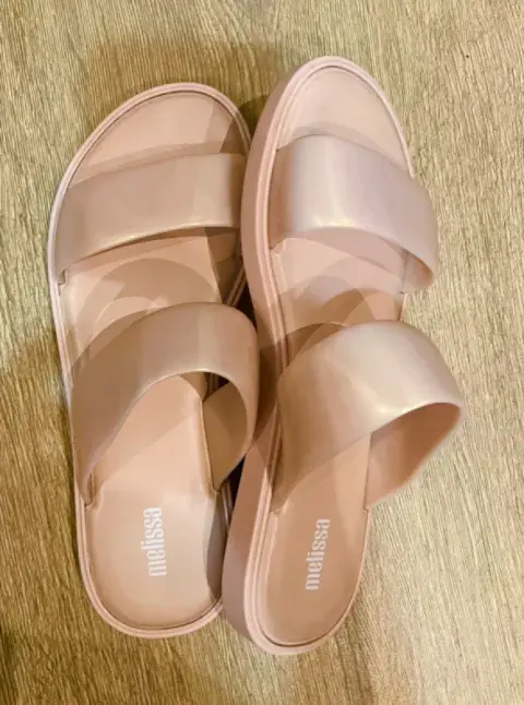 SANDALIAS PLANAS MELISA 24.5, color rosa palo.. SANDALIAS PLANAS MELISSACOLOR ROSA PALO, TALLA 4.5COMO NUEVAS!!Matetial sintético, certificado 100% vegano., 100% Reciclable.Duradero, flexible e hipoalergénico. Aroma a chicle. Suela de goma. Material interior: sintético(Melflex).Material de la suela: sintético (Melflex).