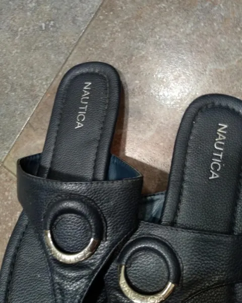 Sandalias planas nautica con aplicación. En buen estado el detalle se obserba en ultima foto no afecta su uso y puestas no se nota, trae la marca en plantilla,suela,logotipo circular y donde va tu dedo, ideal para un look casual,playa o bien andar comoda todo el dia.