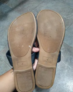 En buen estado el detalle se obserba en ultima foto no afecta su uso y puestas no se nota, trae la marca en plantilla,suela,logotipo circular y donde va tu dedo, ideal para un look casual,playa o bien andar comoda todo el dia.