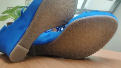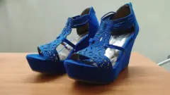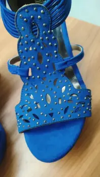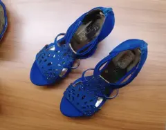 Color azul eléctrico, corte textil en Gamuza, cierre en la parte trasera, súper cómodos. Son nuevos
