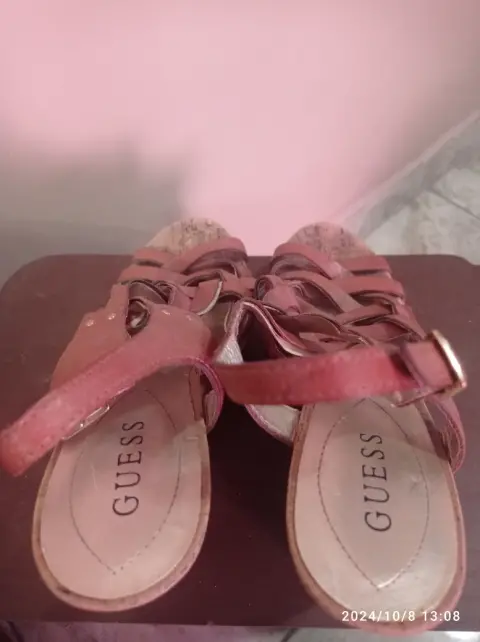 Sandalias color camel,con plataforma tipo corcho,correas cruzadas,marca Guess.#8 americano.Alto de plataforma:11.5 cmPoco usoBuenas condiciones