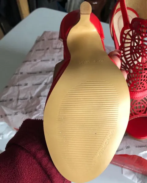 Sandalias rojas Andrea. Nuevas con caja original, altura del tacón 11 cm