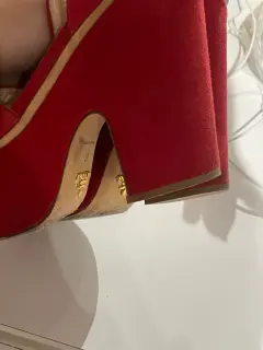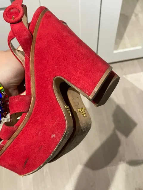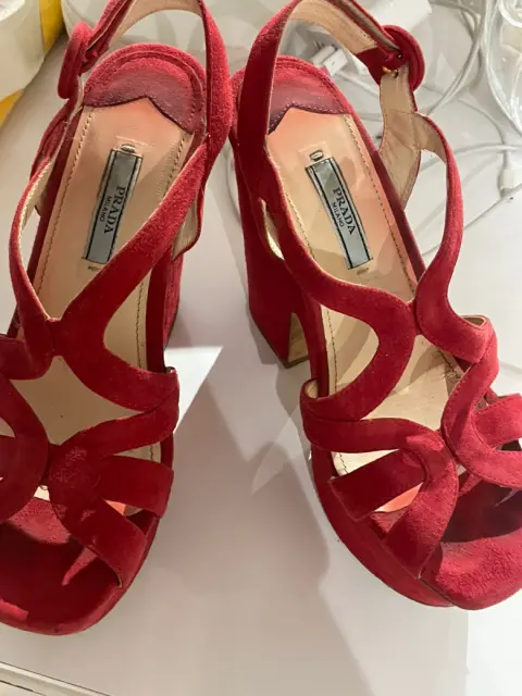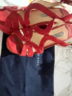SANDALIAS ROJAS PRADA. Súper cómodas, muy lindas, estilizan el pie padrisimo. Les falta limpieza y tal cual ves en las fotos tienen detalles normales de uso.