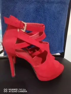 Sandalias rojas de tacon número 12 en excelente estado. Talla numero 5. Una sola puesta.