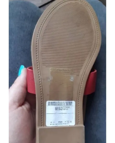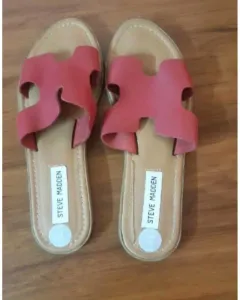 Sandalias modelo H , color rojas , de piel , tiene corrido un hilo de la costura , se muestra en la foto , no afecta a su uso . Steve Madden de temporada