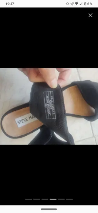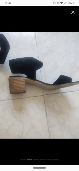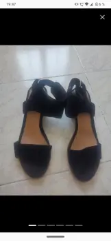 Sandalias de tipo gamuza en color negro, marca Steve Madden, con muy poco uso. Tacón cuadrado tipo madera de 7cm.