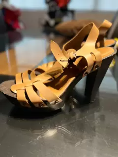Hermosas sandalias de tacón, color café, Perfecto estado, talla 26, altura 12 cm.