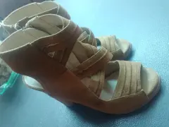 Sandalias tacón circular Cloe. Hermosas sandalias color camel, piel gamuza, tacón circular alto, cierre posterior, súper combinables. ¡Dales una segunda oportunidad! También disponible en paquete con falda del mismo tono y tipo de tela.