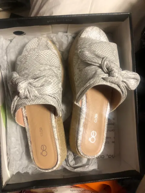 Sandalias tipo plataforma. Plataforma plata con moño delantero cómodas