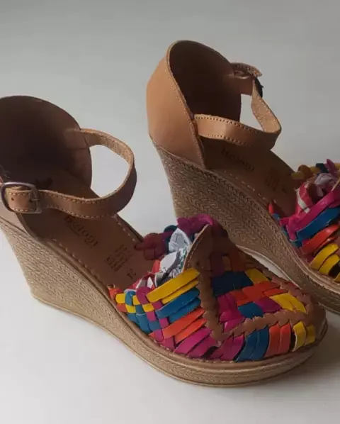 Sandalias tiras de colores. Sandalia de plataforma hecha en cuero suela sintética talla 24 y 25