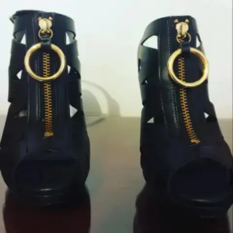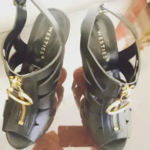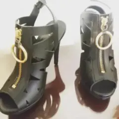 Sandalias Westies. Hermosas zapatillas westies, en color negro, con correa, talón y punta descubiertos.