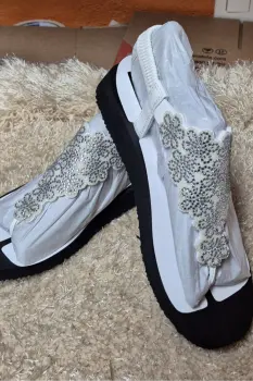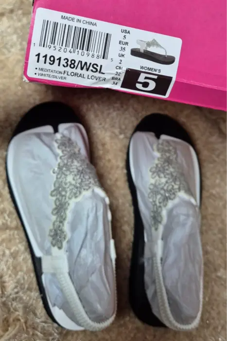 Sandalia Casual Yoga FoamPlantilla acolchada con espuma de yogaPuente para dedos de tela suaveCorte láser floral y detalles de estrásTacón plano de 1,3 cm