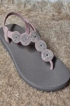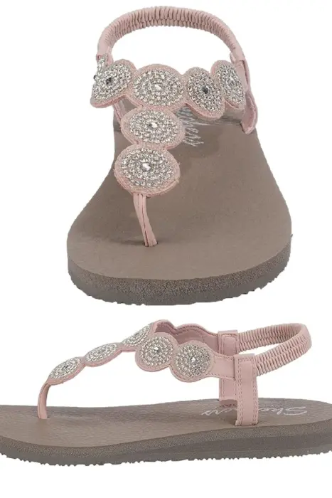 Skechers Sandalia StarsSparkle T-3Mx/6Us. Parte superior sintética, Empeine con correa en T circularcon adornos de diamantes de imitación *Tanga para el dedoEstilo sin cordones con correa elástica en el talónPlantilla cómoda y acolchada de YOGA FOAM®Suela exterior de tracción flexible *Altura del talón de 1/2"Nuevas e originalesEl mejor Precio q encontraras!!