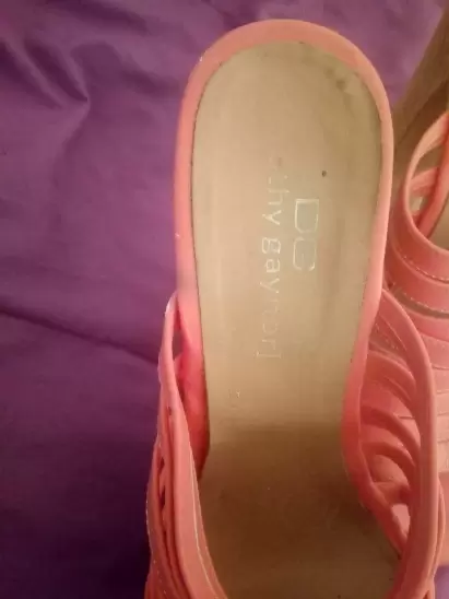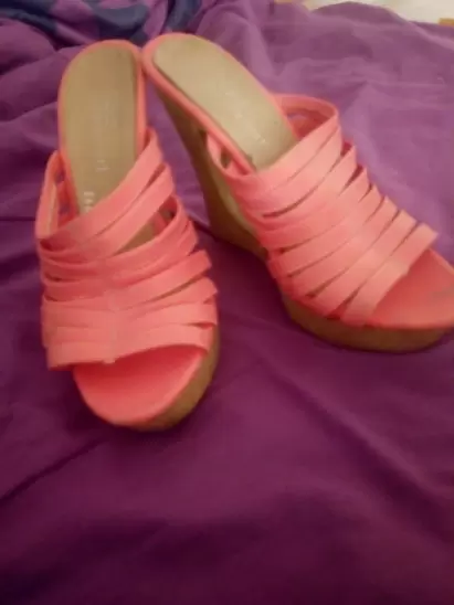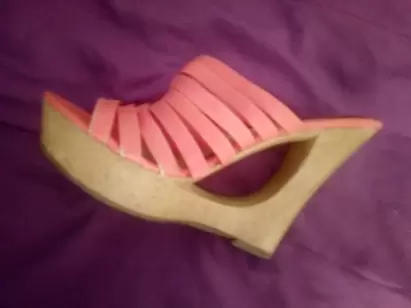 Zapatillas coral. Zapatillas color coral tacón #12, modernas con tacón con hueco, Dorothy Gaynor