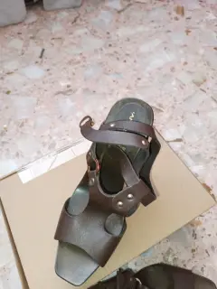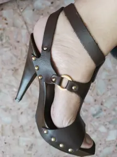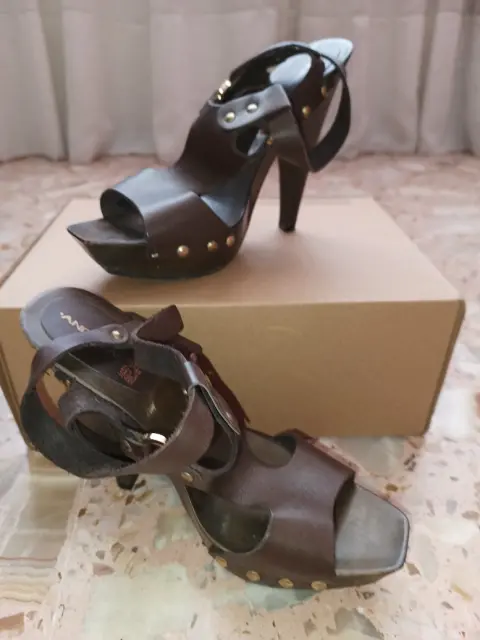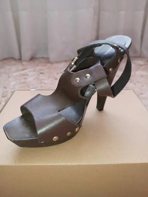 Zapatillas de piel con tachuelas. Zapatillas de piel con tachuelas en cafe tabacoUsado solo una vezTacon 12 cm
