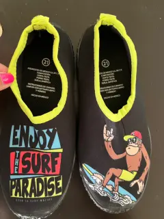 Zapato acuático para niño #21 completamente nuevos (solo que se le quitó la etiqueta ) nunca usados , color negros con amarillo y diseño de un changuito .