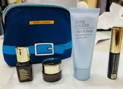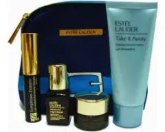 Estee lauder. Mini cosmetiquera con cuatro productos, rimel, cremas para rostro, etc súper cómodo he ideal para viaje.