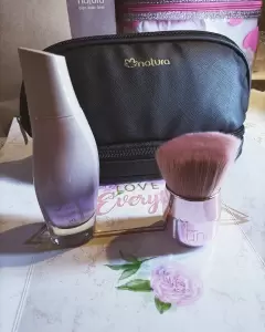 Padrísimo Kit NATURA 3 piezas!! Incluye: • Cosmetiquera negra con cierre mediana!! • Brocha UNA para maquillaje multiusos color rosita!! • Perfume Luna Floral Todos los artículos son totalmente nuevos en perfecto estado en su empaque original!! Con gusto resuelvo cualquier duda!!