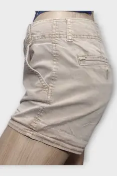 American Eagle Short Algodón Caqui T6 Strech. American Eagle Short Dama Algodón Caqui T6 StrechShort marca American Eagle en 97% Algodón 3% ElastanoMarca: American EagleOrigen: BangladeshMaterial: 97% Algodón 3% ElastanoTalla: 6 StrechEstilo: ShortiePatrón: StrechColor: CaquiCierre: CremalleraCadera: 48 cmLargo: 30 cmCintura: 38 cmMuslo: 29 cmTiro: 20 cmRopa de USO en muy buen estado