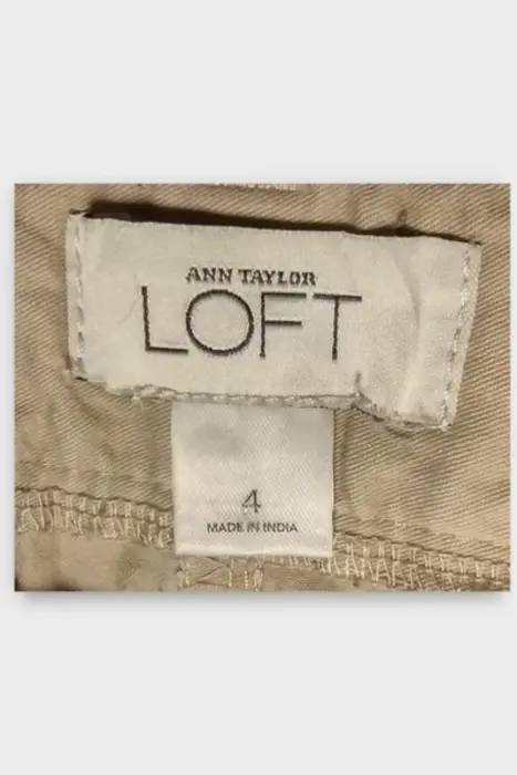 ANN TAYLOR LOFT Short Dama Algodón XS. ANN TAYLOR LOFT Short Dama Algodón XS 4Marca: ANN TAYLOR LOFTOrigen: IndiaMaterial: 100% AlgodónTalla: XS - 4Estilo: ShortPatrón: CaquiColor: Marrón Cierre: Cremallera y BotónCadera: 49 cmLargo: 32 cmCintura: 40 cmMuslo: 29 cmTiro: 18 cmEntrepierna: 31 cmRopa de USO en muy buen estado