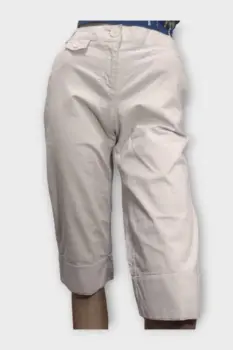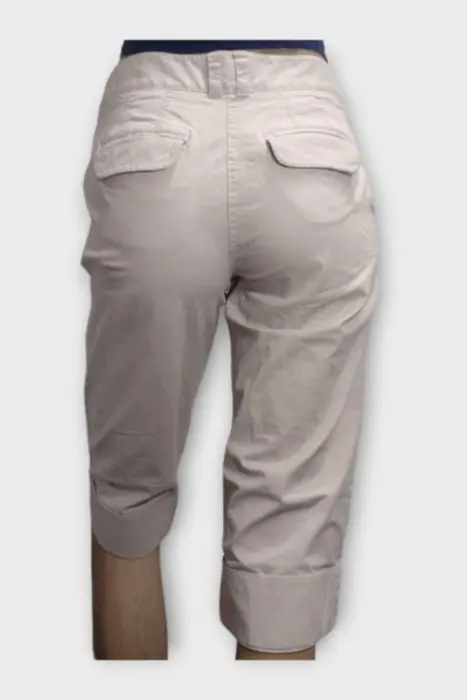 Ann Taylor Short Capri Algodón Chinos T4 P. Ann Taylor Short Capri Dama Algodón Chinos T4 PPantalón Capri en 97% Algodón 3% SpandexMarca: Ann TaylorOrigen: Sri LankaMaterial: 97% Algodón 3% SpandexTalla: 4PEstilo: CasualPatrón: CapriColor: Chinos CaquiCierre: CremalleraCadera: 47 cmLargo: 65 cmCintura: 36 cmMuslo: 20 cm Tiro: 23 cmRopa de USO en muy buen estado