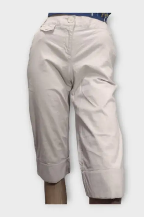 Ann Taylor Short Capri Dama Algodón Chinos T4 PPantalón Capri en 97% Algodón 3% SpandexMarca: Ann TaylorOrigen: Sri LankaMaterial: 97% Algodón 3% SpandexTalla: 4PEstilo: CasualPatrón: CapriColor: Chinos CaquiCierre: CremalleraCadera: 47 cmLargo: 65 cmCintura: 36 cmMuslo: 20 cm Tiro: 23 cmRopa de USO en muy buen estado