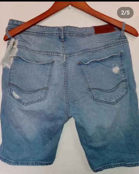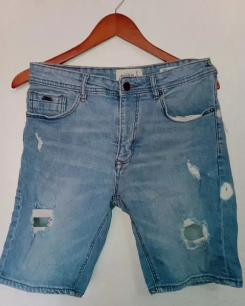 Bonita bermuda de mezclillaTalla 32 Rasgado, se ve un poco más en el área de cinturón, lo puedes ver en las fotos.