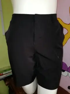 Bonito short ligero color negro es de secado fácil es muy delgadito y de buena calidad tiene forro bolsas resortes para que se ajuste es a la rodilla muy bonito