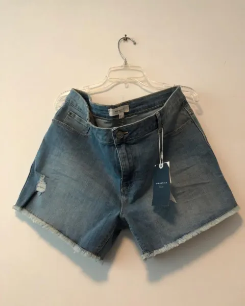 Color azul, talla 34 mex , nuevo, deshilado en la parte de abajo con adorno deshilado en la parte inferior derecha,en la parte trasera tiene bolsas con adornos de desgaste