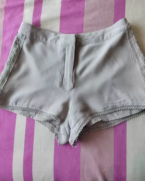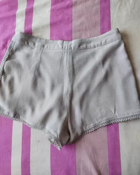 Hermoso shorts con encaje. Hermoso short con detalles de encaje, tiene un pequeño detalle debajo del cierre, trae forro, la tela es como de vestido de fiesta, no estira.Medidas: cintura 76 cm, tiro 30 cm, cadera 47 cm.
