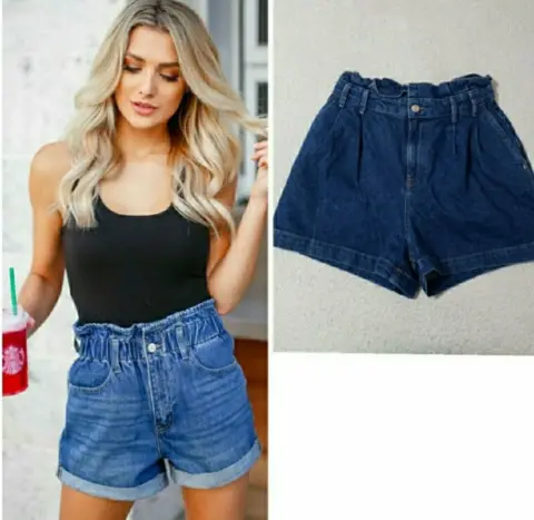 Increible short corte papper bag, mezclilla gruesa, muy comodo, es cintura alta, bolsa laterales y traseras, se puede usar con cinturon, medias: cintura 38cm, cadera 54cm
