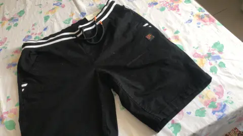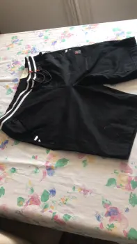 jogger shorts. bermuda modelo jogger shorts color negro y resorte en la cintura negro con rayas blancas